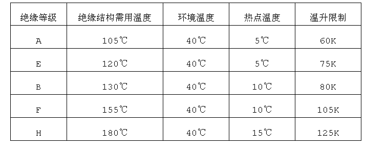 此外,電機中絕緣材料的壽命與運行溫度有密切的關(guān)系,為確保電機的安全、合理使用,需要監視與測量電機的繞組、鐵芯等其他部分的溫度;按照國家標準規定,不同的絕緣等級的電機繞組有不同的允許溫升,如下表所示: